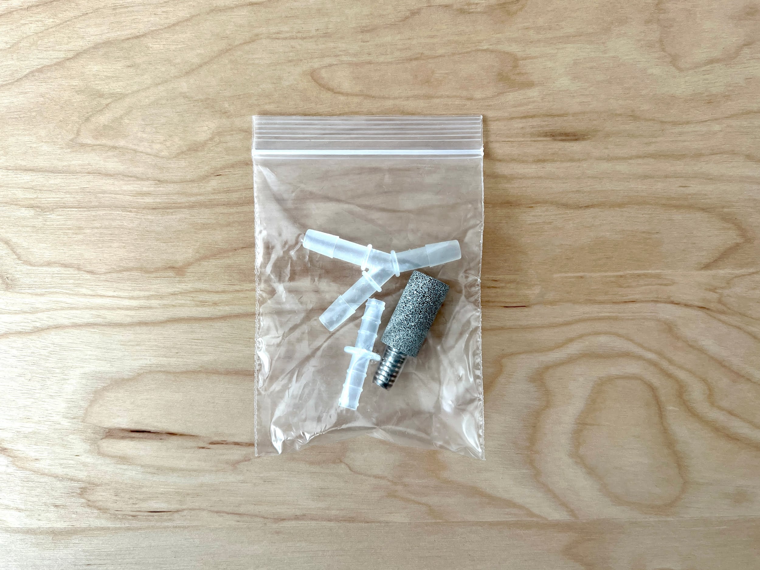 2 plastic connectors and stone